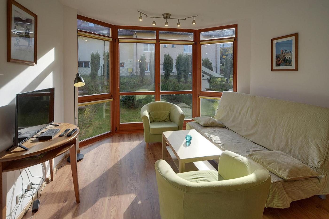 Apartment with Balcony. Featuring a private entrance, this apartment consists of 1 living room, 1 separate bedroom and 1 bathroom with a shower and a hairdryer. Guests can make meals in the kitchenette that is equipped with a stovetop, a refrigerator, kitchenware and a microwave. Boasting a balcony with garden views, this apartment also provides a tea and coffee maker and a flat-screen TV. The unit offers 3 beds.